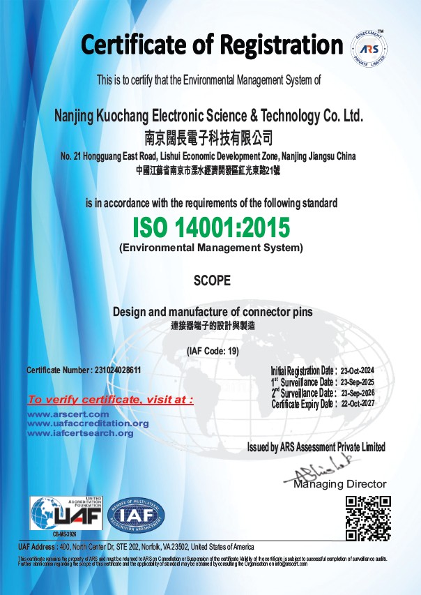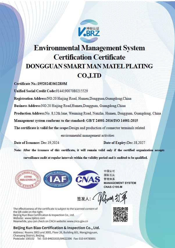 榮獲ISO14001國際質量管理體系認證